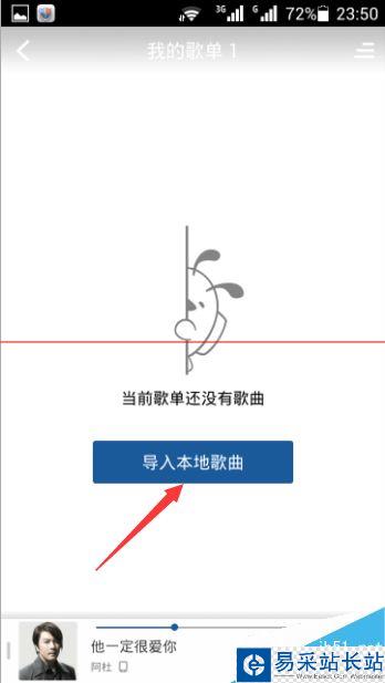 5、點擊歌單名字,出現如下畫面,點擊下方”導入本地歌曲“按鈕。