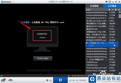 4、連接成功后,我們打開播放列表,隨便打開一部本地或者在線的視頻,視頻就會被投到dlna設備上播放。如果要切換到電腦上播放,單機暴風影音中的“切回到本機播放”。
