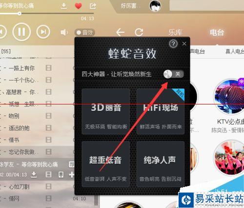 2、更新成功酷狗音樂后,我們點擊打開酷狗音樂,然后點擊音量設置上的音效,如圖所示