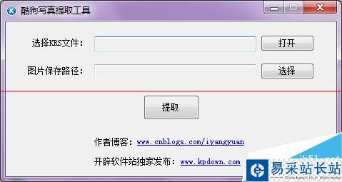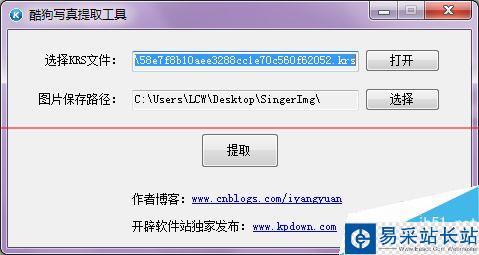 5、在選擇KRS文件里選擇歌手的KRS文件(如C:/Users/LCW/AppData/Roaming/KuGou8/SingerImg/58e7f8b10aee3288cc1e70c560f62052.krs)。圖片保存路徑里選擇寫真圖片提取后的保存路徑(如C:/Users/LCW/Desktop/SingerImg/)。最后點提取。出現提取成功后,表明提取成功了。