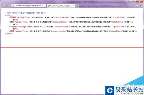 以鄧麗君為例:<鄧麗君 PackageTime="2014-5-24 14:18:36" ResourceHash="58e7f8b10aee3288cc1e70c560f62052" UpdateTime="2014-6-27"/>括號里的鄧麗君是歌手名稱,后面的“ResourceHash="58e7f8b10aee3288cc1e70c560f62052"”(不包含最外面的引號)是歌手寫真圖片保存的文件名(即58e7f8b10aee3288cc1e70c560f62052)。