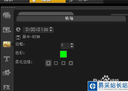 4、改變切換效果時間長度:用鼠標雙擊視頻軌道上兩個圖片之間的轉場,會出現一個面板,如圖示,點擊面板上面的時間按鈕可以改變切換效果的時間長短。
