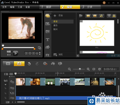 1、打開制作好的視頻雛形,即只有照片和音樂,如圖示: