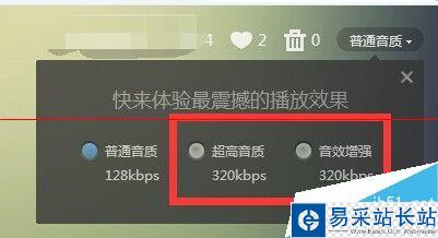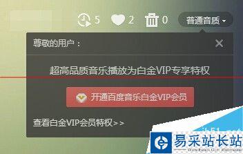 5、如果你是一個追求高品質的土豪,對音樂音質特別敏感和挑剔,那么你可以點擊右上角的音質選項,然后選擇超高音質或者音效增強,但這是有條件的,就是你開通百度音樂白金VIP會員哦。