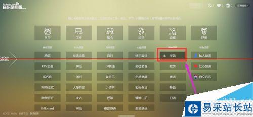 4、進入換臺頁面之后,是所有隨心聽音樂的分類標簽,你會發現其中一個有音階在跳動,這表示此時你所聽到的音樂是這個類別的,你可以根據你的需要選擇其他類別,然后隨心聽平臺會自動為你換歌。