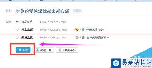 6、如果你很喜歡這首隨機播放的音樂,想把它下載到電腦上,這樣能夠經常聽聽,就點擊下載按鈕,然后進入下載頁面,再一次點擊一下下載按鈕,就可以下載啦,同樣的,如果想下載音質最好的版本,就得開通會員哦。