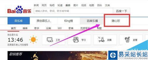 2、小伙伴們進入百度音樂的首頁之后,接著就點擊導航欄上的那個隨心聽按鈕,即可進入隨心聽的頁面。