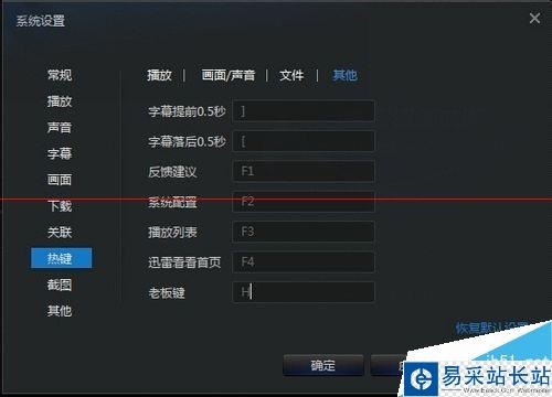 3、缺省進入的是熱鍵下的播放熱鍵設(shè)置,可以看一下哪些鍵位已經(jīng)被使用,鼠標選擇其它菜單