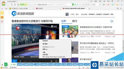 3、右鍵網(wǎng)頁視頻,看看是不是Adobe Flash Player版本太久了,更新一下版本。
