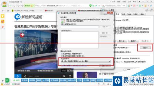 8、點(diǎn)擊彈窗阻止程序里的設(shè)置,將彈窗阻止程序級(jí)別設(shè)置為最高級(jí)。