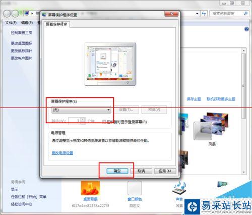 3、點(diǎn)擊屏幕保護(hù)程序,把其設(shè)置為(無),確定。檢查一下播放器是否還是自動(dòng)退出全屏。