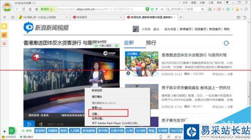 4、右鍵網(wǎng)頁視頻,在彈出的菜單選項(xiàng)卡中選擇設(shè)置。