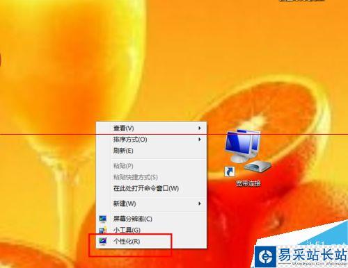 1、在電腦桌面右鍵鼠標(biāo),在彈出的菜單選項(xiàng)卡中選在“個(gè)性化”。