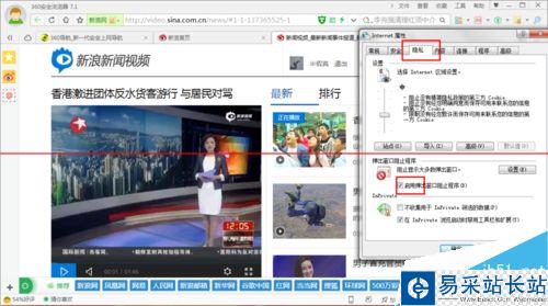 7、在彈出的internet屬性選項(xiàng)卡中選擇隱私,勾選啟用彈窗阻止程序。
