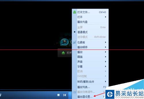 2、然后我們在空白處右鍵的,出現大量的對話框,我們找到下邊的播放器設置