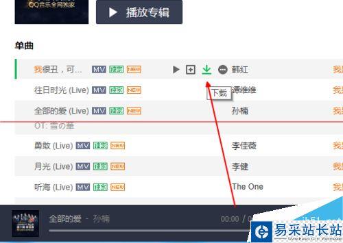 5、我們找到一首歌,把鼠標放上去,就出現下載的小箭頭