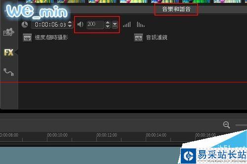 6、再雙擊音頻素材,同樣會打開選項面板,把音量加大一些,這里調整到200。再次整體試聽一下,如果還不滿意就再重新調整音量。直到滿意為止。最后保存合成新的視頻文件就可以了。