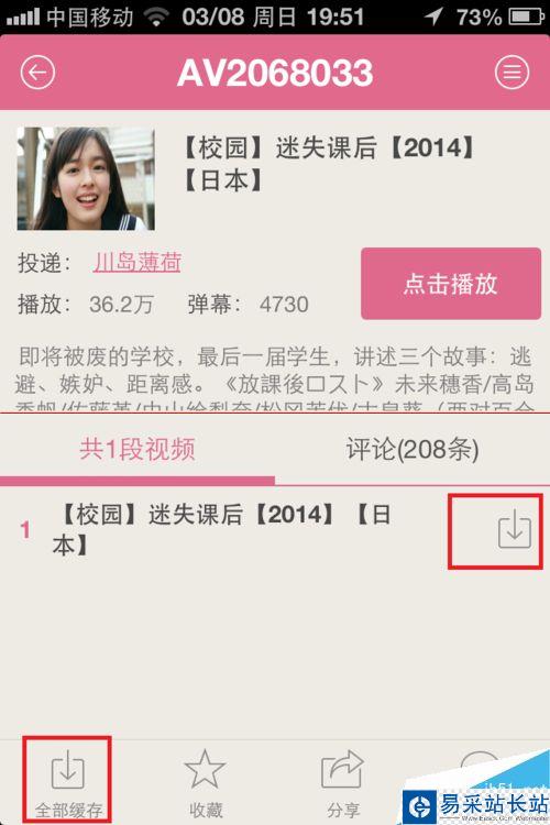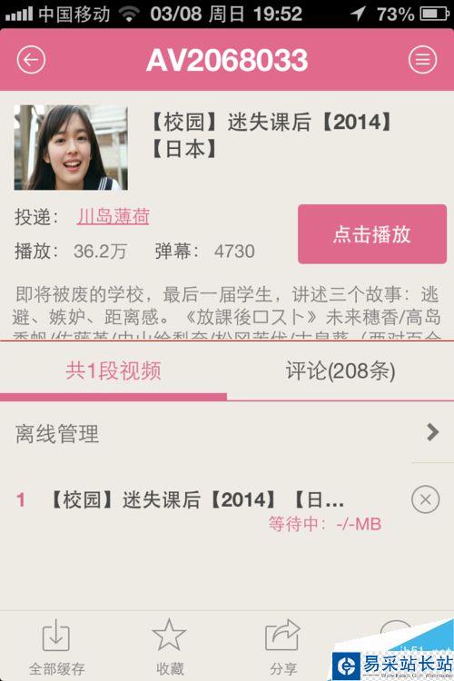 6、如果你覺得視頻不錯或者離線看,當然直播除外,那么可以點擊視頻的下載按鈕或者“全部緩存”。然后在【我】-【離線任務】中查看該視頻。