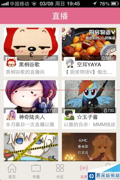 2、這個列表是以在線人數來排序。進入后,在點擊大大的白色播放鍵即可看到直播了。