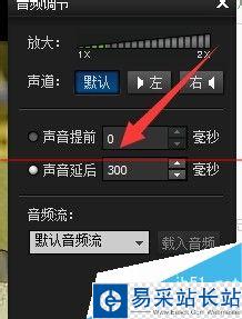 5、如果先出聲,后出畫面,點擊聲音延后,此時點擊右放的兩個小箭頭調整延后的時間
