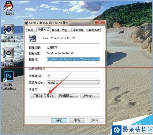 1、首先在會聲會影的圖標中用右鍵點擊,在彈出的菜單中找到屬性并打開。