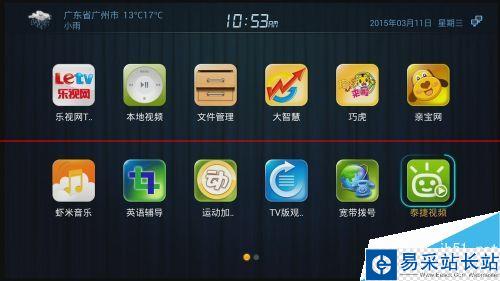 3、OK,完成安裝后,返回我的應用里找到剛剛安裝的泰捷視頻,打開,你的樂視盒子不僅有700+多個直播電視臺,增設少兒頻道,體育頻道,地方頻道等豐富的直播頻道資源;8000多部電視劇,1萬7千多部電影,還有非常豐富的動漫、綜藝等視頻資源;更新速度及時。所有電視劇、綜藝節目、院線大片都能及時更新, 2-3小時內與同步網絡。