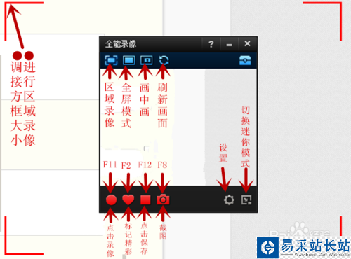 有兩種模式錄像:1、區域錄像 2、全屏錄像