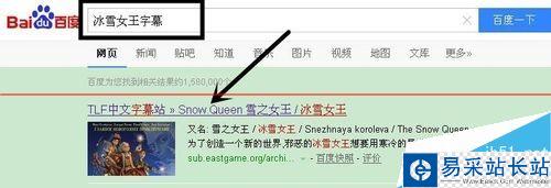 3、打開瀏覽器,在百度里搜索“冰雪女王字幕”,然后點擊搜索結(jié)果,并進去下載好字幕。