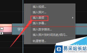第五步:右鍵空軌道,選擇“插入音頻”,選擇自己喜歡的音樂插入。