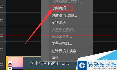 第二步:在視頻上右鍵單擊,“分割音頻”。