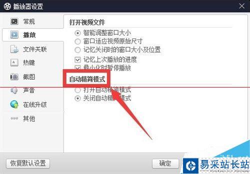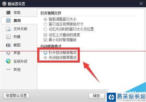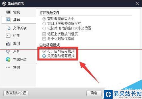 1.4在“播放”設(shè)置選項(xiàng)卡,找到“自動(dòng)精簡模式”,然后設(shè)置成打開自動(dòng)精簡模式,如圖