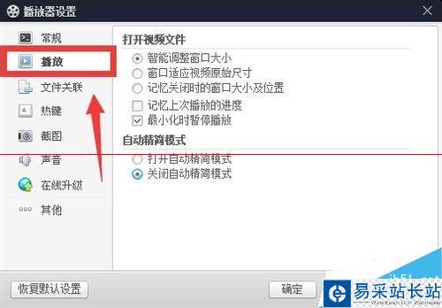 1.3在“播放器設(shè)置面板”找到“播放”設(shè)置選項(xiàng)卡,如圖