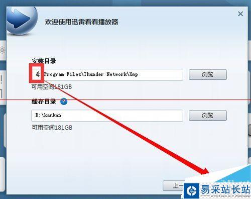 6、在下一個(gè)界面 安裝目錄中只需要將將c改成d保證不安裝在系統(tǒng)盤即可 緩存目錄不用改 然后點(diǎn)按下一步