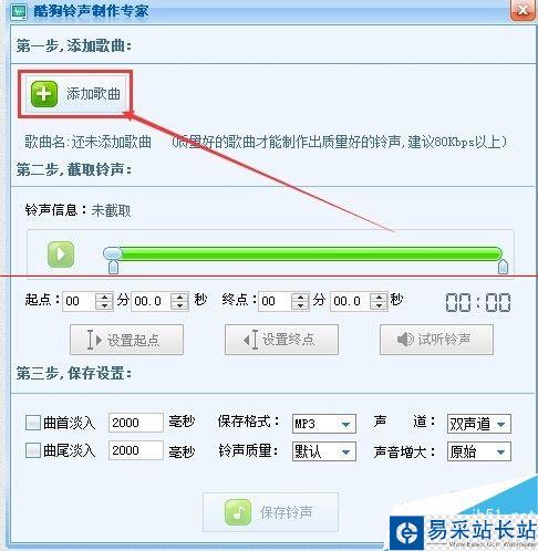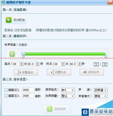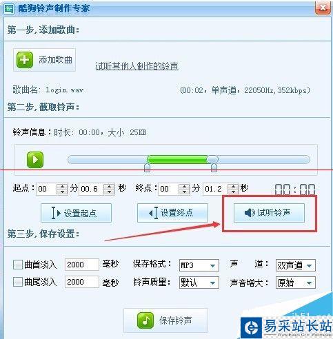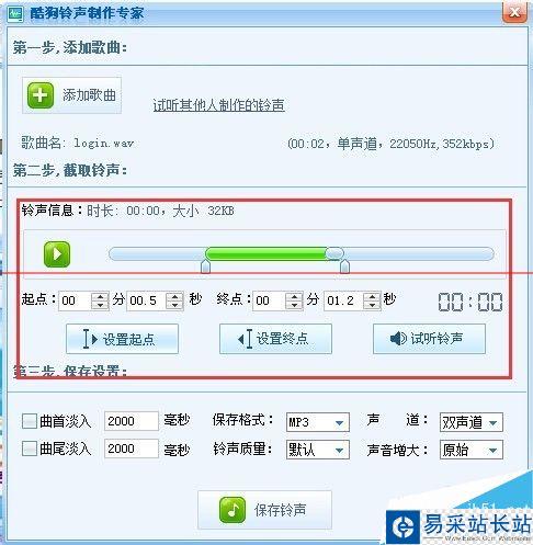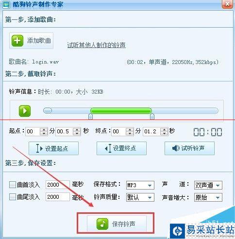 5、試聽滿意后,點(diǎn)擊上面的“保存鈴聲”然后保存到本地修改下歌曲名字,就完成了。如圖所示。