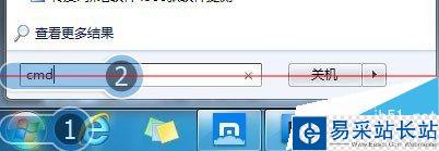 1.點擊【開始】菜單→在搜索框中輸入"cmd"→按鍵盤enter(回車)鍵: