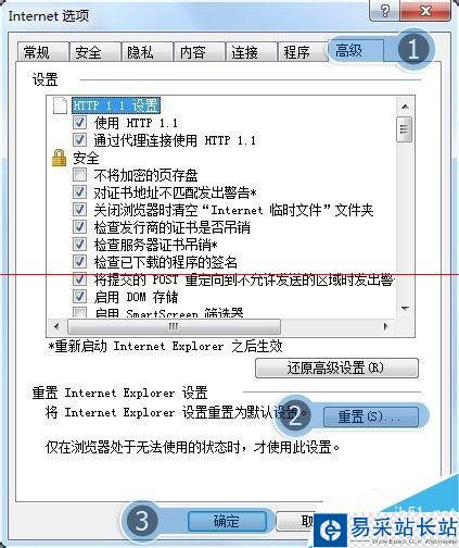 方案四:重置IE(說明:如果您使用網絡代理或者對瀏覽器有特殊設置,請保存設置后再進行操作)