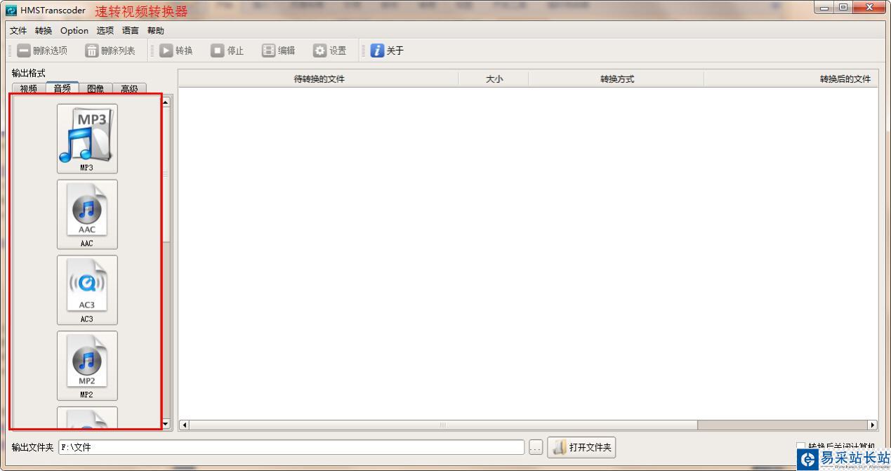 在音頻轉換方面,速轉視頻轉換器可以高速地將各種主流音視頻格式,如MP3、WMA、MP2、等格式,編輯轉換輸出AC3、MP2、WMA、AMR、OGG、FLAC等音頻格式。