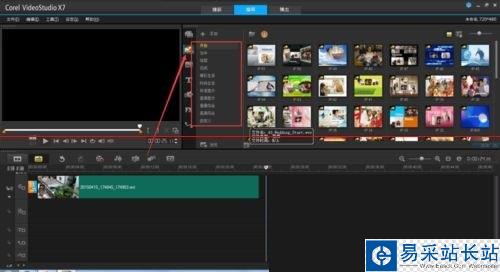 5、找到自己喜歡的場景,拖到視頻軌跡的前面