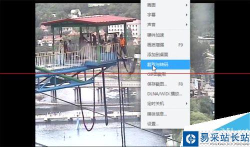 2、文件播放后,在畫面上點(diǎn)右鍵,選擇“截取與轉(zhuǎn)碼”。