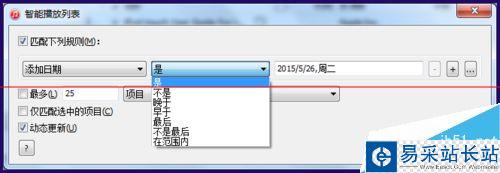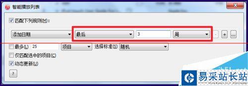 7、如下圖所示,顯示最近3周添加的文件,過(guò)了這段時(shí)間的文件就不會(huì)在這個(gè)播放列表內(nèi)了,還可以設(shè)置成顯示某個(gè)日期后添加的文件等