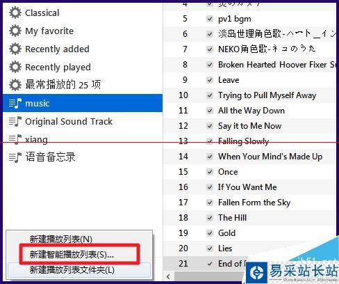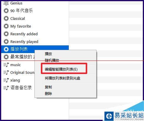 9、可能還有一個(gè)問(wèn)題,就是所有在這段時(shí)間添加的文件(比如視頻、書籍)都會(huì)顯示在這個(gè)列表內(nèi),如果只要顯示音樂(lè),右擊播放列表,選擇【編輯智能播放列表】,再添加一個(gè)規(guī)則