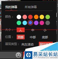 3、點擊影片播放屏幕右下方的彈幕設置,可以設置彈幕字體大小,顏色,位置以及展現類型等,如下圖所示。