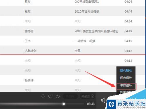 6、如果對音樂播放器的歌曲不進行單曲循環,可以對進行其它的設置,設置完成就不會單曲循環。