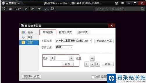 第五步:改變字幕時間屬性:同樣右鍵單擊播放器,選擇“字幕”選項里的“字幕控制”選項,然后在“字幕控制”下的“同步”位置,可選擇延遲或提前字幕。