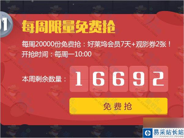 1. 活動每周提供20000份“好萊塢會員7天體驗資格”,QQ會員/超級會員可于每周一上午十點開始領取,數量有限,先到先得。