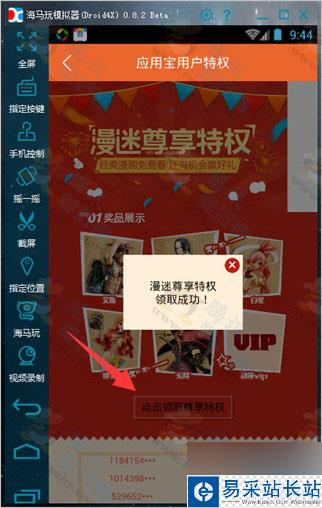 1、應(yīng)用寶下載騰訊動漫APP,蘋果用戶可以用海馬玩模擬器(安裝過騰訊動漫的手機(jī)也可以,先卸載原客戶端重新下載即可);打開APP 在幻燈圖最后一張就是活動入口(非應(yīng)用寶新下載的沒有入口)。