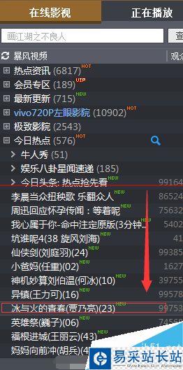 1、首先我們?cè)诖蜷_暴風(fēng)影音的同時(shí),點(diǎn)擊打開一個(gè)自己喜歡的電影,電影可以從左側(cè)暴風(fēng)影音推薦的里面隨便選擇。