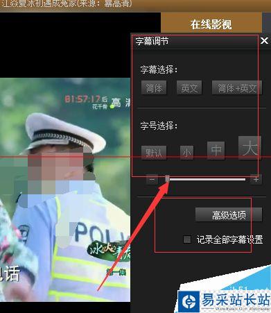5、我們調(diào)整好字幕選擇之后,接下來把字號(hào)調(diào)整完,之后點(diǎn)擊下面的高級(jí)選項(xiàng),出現(xiàn)一個(gè)我們可以載入字幕的界面。