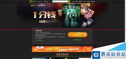 9、瀏覽打開http://vip.iqiyi.com/7daystrial1cent.html?fc=81d8deee641366f9&src=focustat_1_20130410_1活動鏈接入口。點擊“一分錢試用7天”。