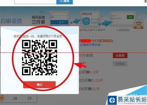 5、我們這邊點擊免費送2個月會員旁邊的去看看按鈕,會彈出一個窗口,上面有個二維碼,我們使用手機進行二維碼掃碼。通過掃碼二維碼我們可以獲取優酷的會員權限。